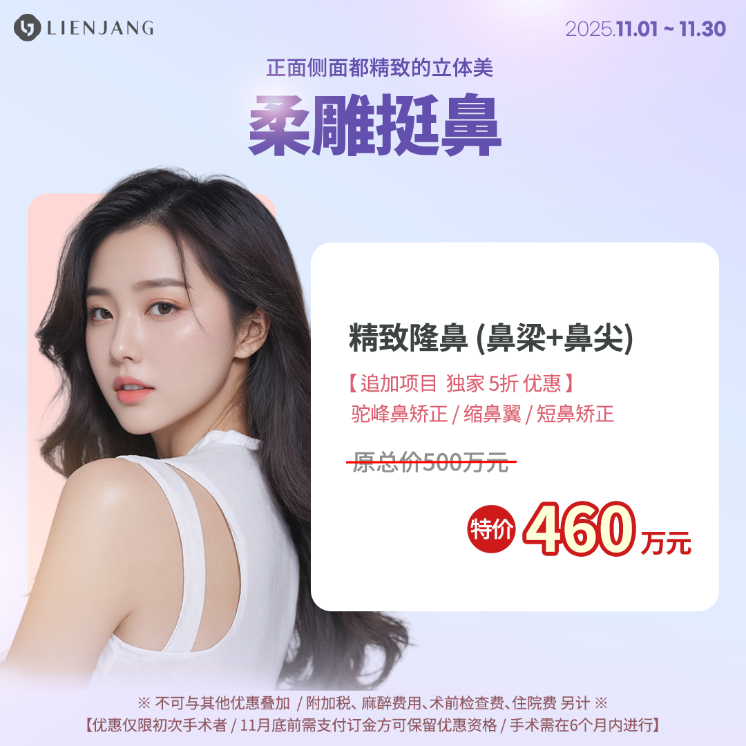 ● Asian Rhinoplasty Type 1: Nose Bridge Augmentation (Silicone Implant) + Nose Tip Correction (Septal Cartilage)