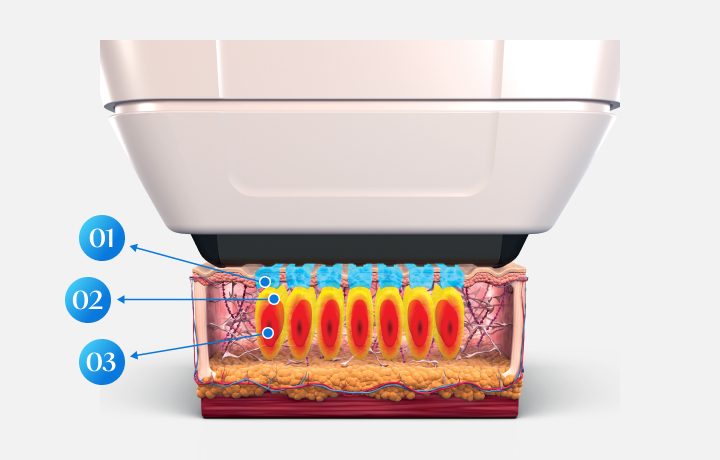 将能量精准照射至中层真皮层 1.5mm 处将效果集中在表皮和真皮层 从而最大程度地减少皮肤损伤